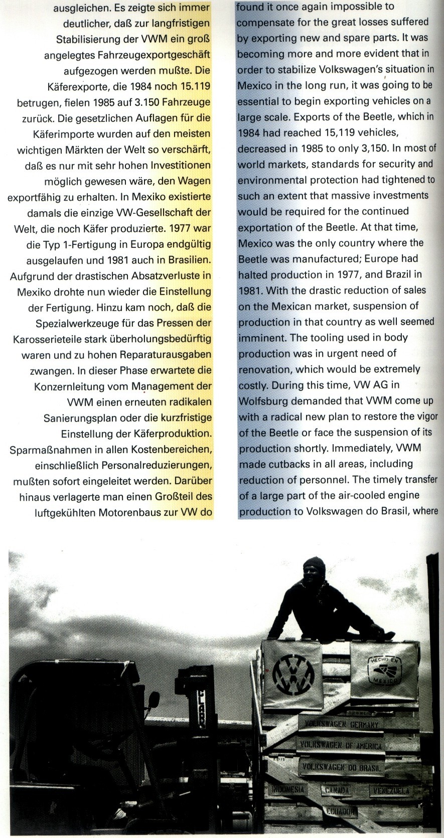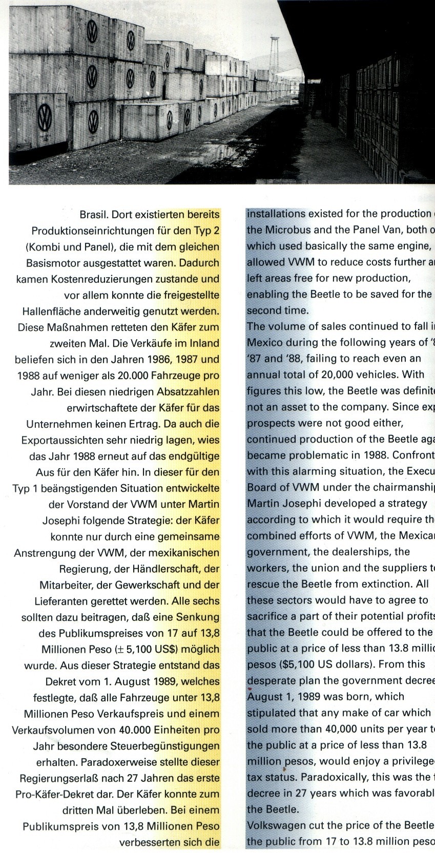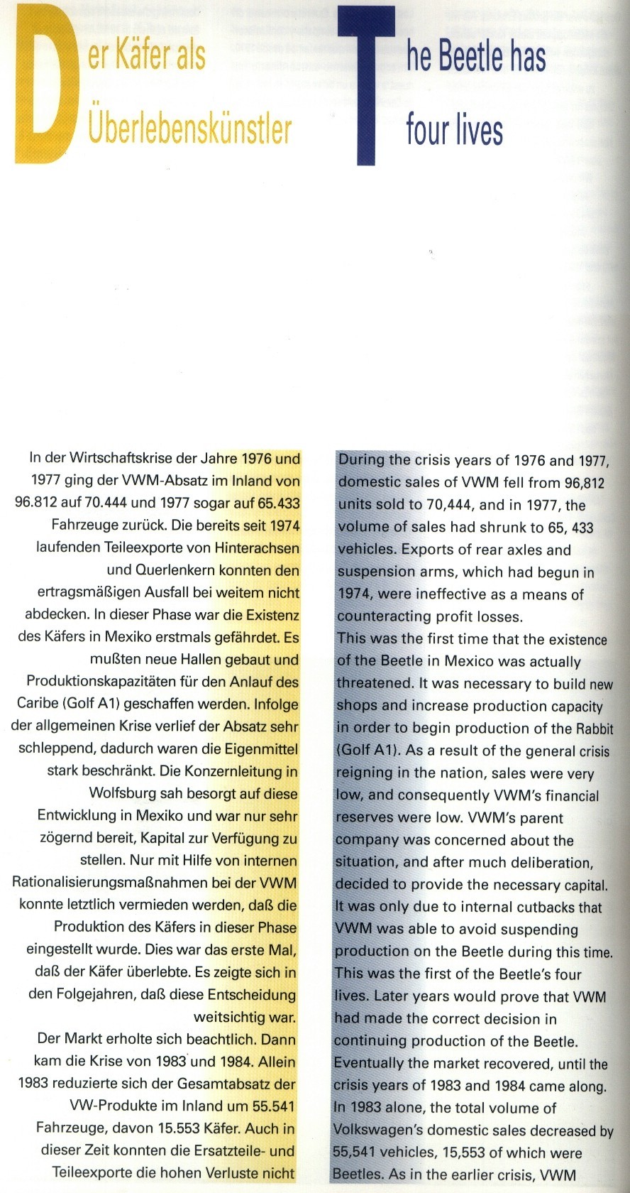 Ganz toll ist das im Buch von Gerhard Schreiber über das VW Werk in Mexico in Deutsch, Englisch und Spanisch nachzulesen. Es erschien 1998 von "Volkswagen de Mexico" mit einer Auflage von "nur" 10.000 Stück. Eine ISBN Nummer hat dieses Buch übrigens nicht.