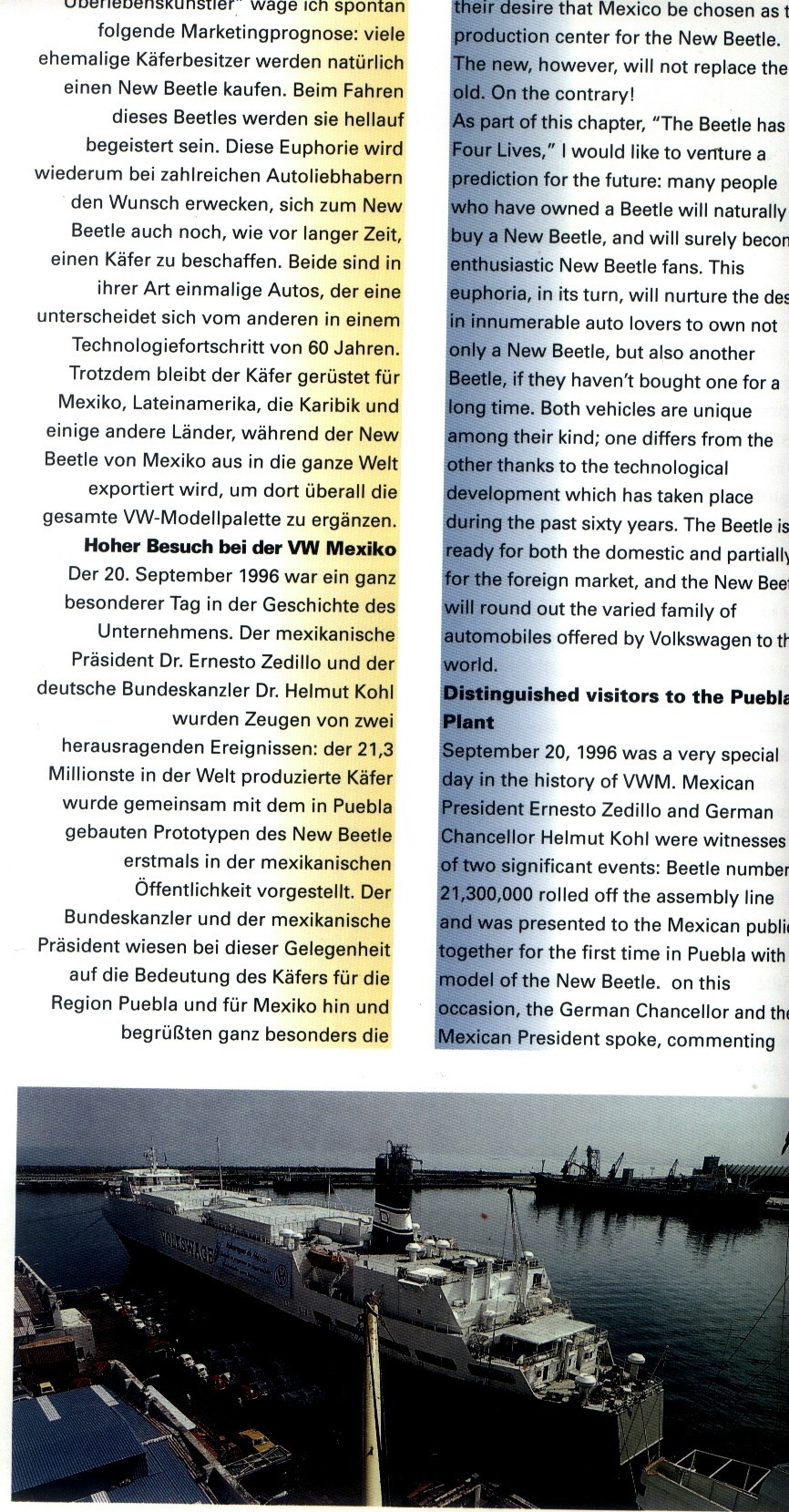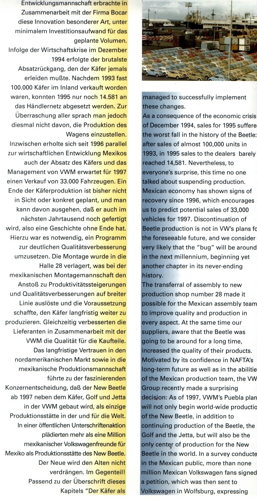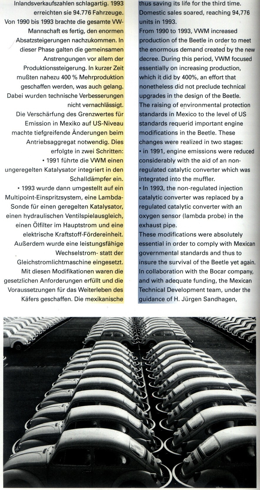 Ganz toll ist das im Buch von Gerhard Schreiber über das VW Werk in Mexico in Deutsch, Englisch und Spanisch nachzulesen. Es erschien 1998 von "Volkswagen de Mexico" mit einer Auflage von "nur" 10.000 Stück. Eine ISBN Nummer hat dieses Buch übrigens nicht.