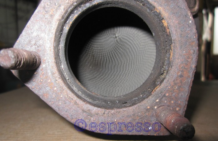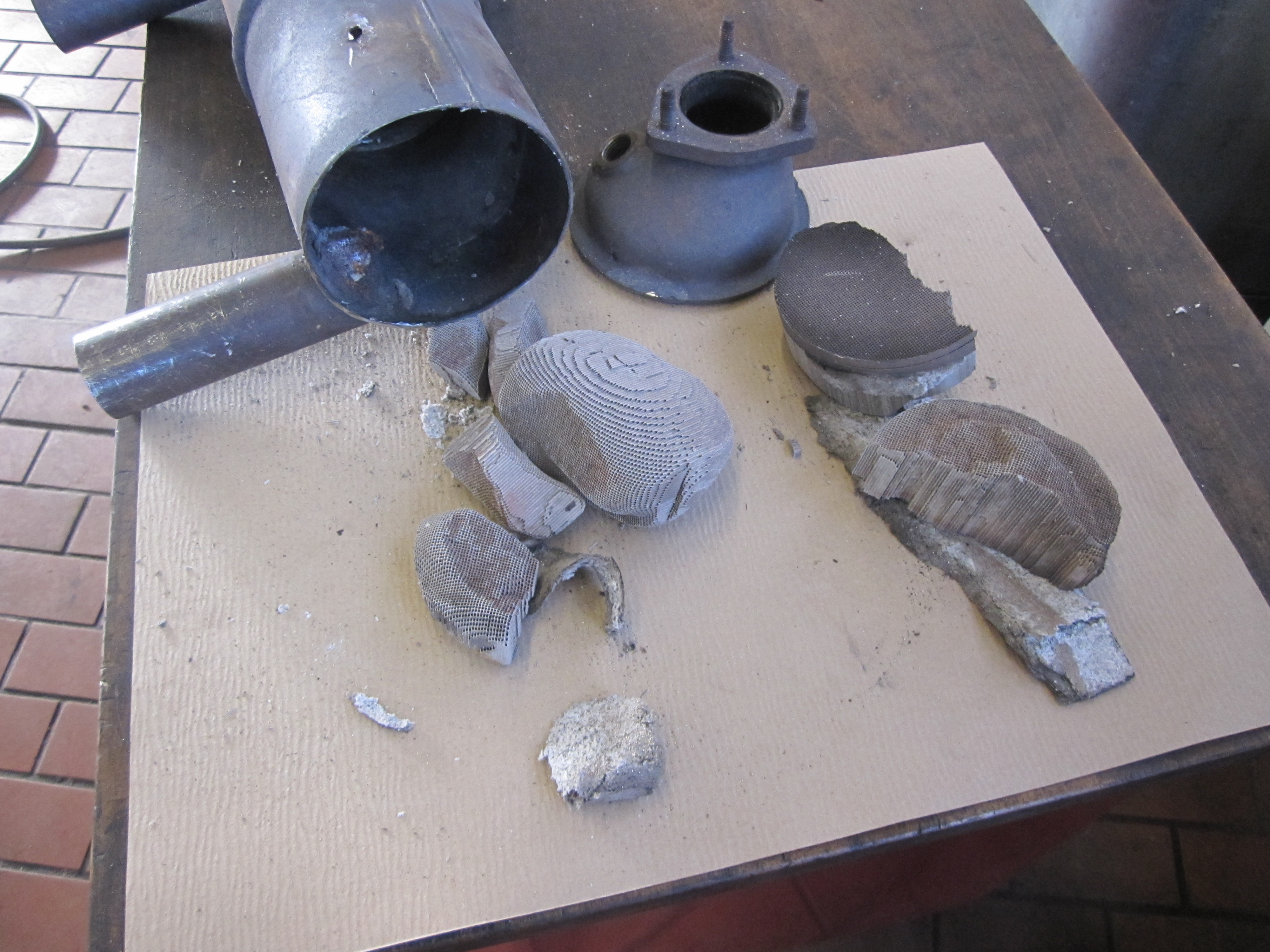 zu 1: hier hat einer probiert, das "blinde" Endrohr zu öffnen und hat den Monolith geschädigt, hier das Ergebnis nach längerer Betriebszeit