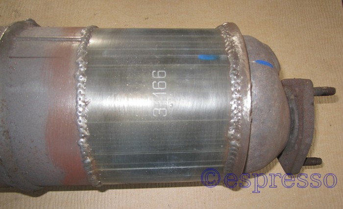 hier wird ein HJS-Kat mit einem Metallträger (d:127x100mm, 400cpsi) von KFZ-Technik Seubert Uni-Kat Pforzheim, wieder fit gemacht.