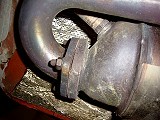 Nach der Demontage des Motorabdeckbleches komt man leicht an die Verschraubungen des Sammelrohres an den Zylinderköpfen. Ich verwende hierfür immer verkupfterte M12 Muttern. Normalerweise sind M13 Muttern verbaut. Sollte diese nicht aufgehen, dann auf keine Fall mit Gewalt versuchen. Am Besten die Mutter entweder sprengen, aufmeiseln oder mit dem Dremel auftrennen. Ein gebrochener Stehbolzen am Zylinderkopf ist eine eckelhafte Angelegenheit.