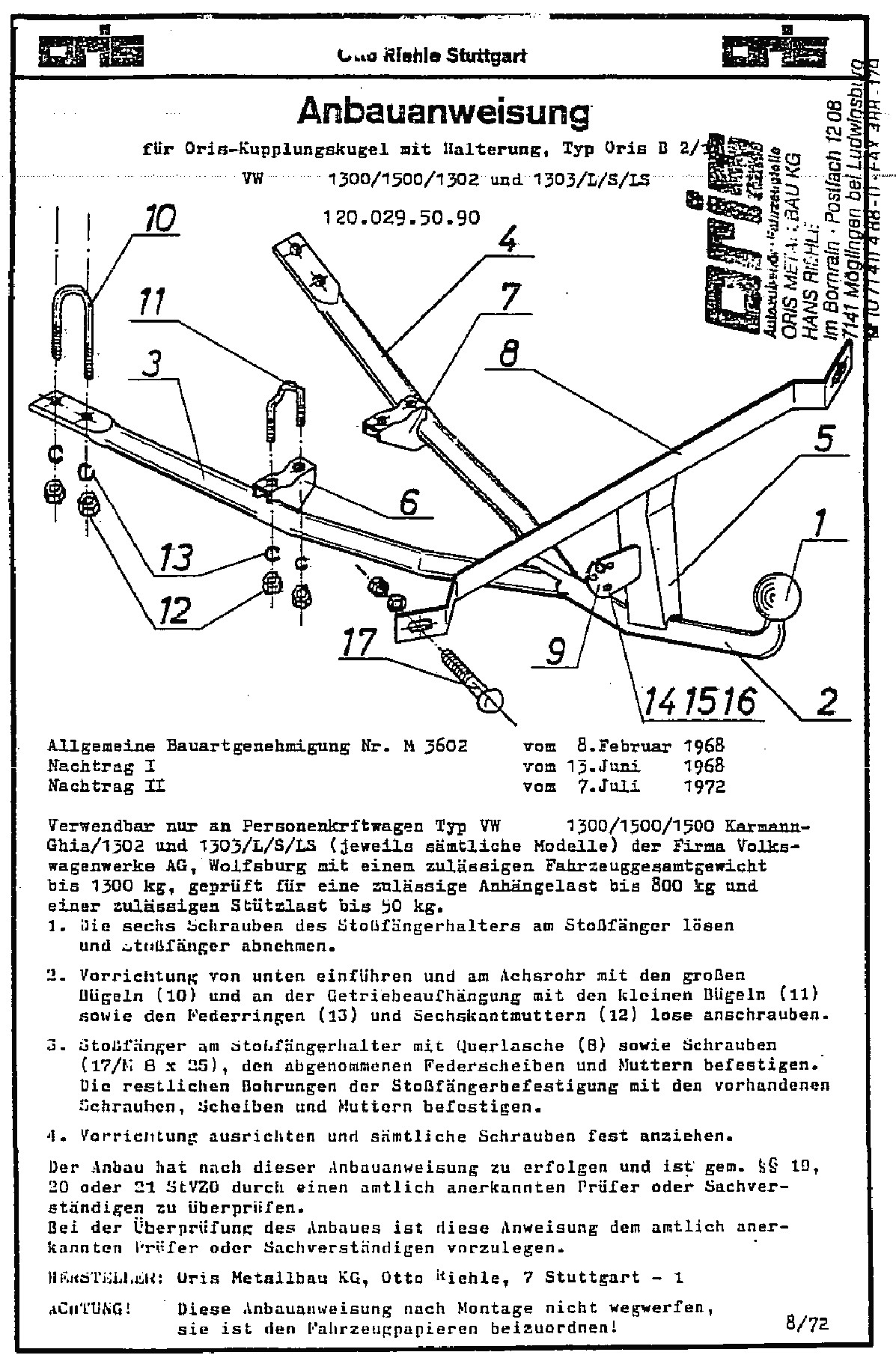 ORIS Kupplungskugel mit Halterung Typ B 2/1 (Anhängerkupplung)