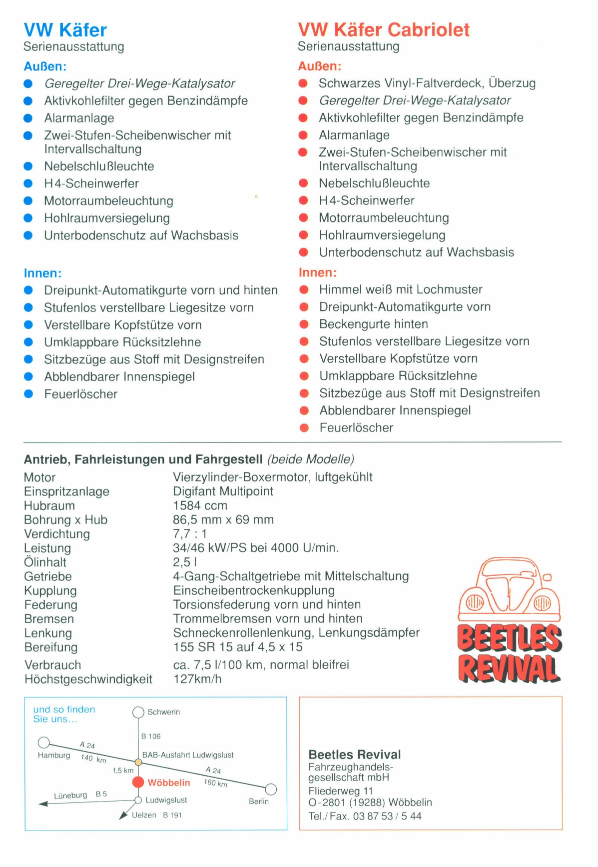 Prospekt 1600i Käfer und Cabriolet von Beetles Revival Ausgabe 1992/93