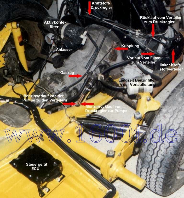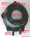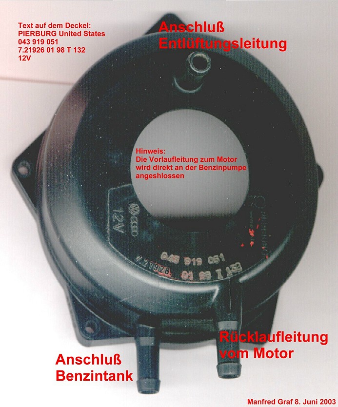 Deckel der Benzinpumpe mit Beschriftung der Anschlüsse |