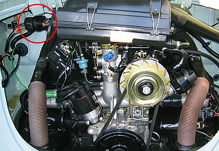 Bei Boom Trikes muss der mit dem Pfeil markierte, weiße Stopfen mit einem Kabel belegt sein !!! Dort wird im Gegensatz zu meinem alten Käfer mit "altem" 1600i Motorkabelbaum der "neue" 1600i Motorkabelbaum verwendet. Und dieser braucht an diesem Pin die Plusverbindung für das Magnetventil des Aktivkohlebehälters.