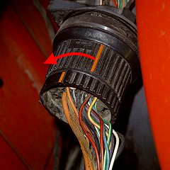 Ansicht des abgeschraubten Teils, das mit dem Kabelbaum zur Karosse verbunden ist.