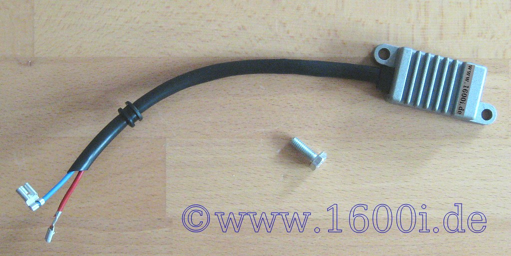 Externer Regler mit Anschlüssen, Isolierschlauch, Gummitülle und Sechskantschraube |