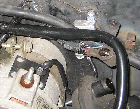 | Gummitülle am am dicken Pluskabel B+ der Lima zurückschieben