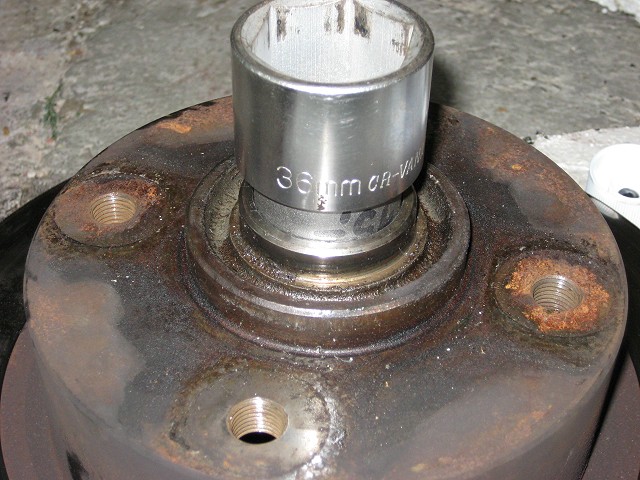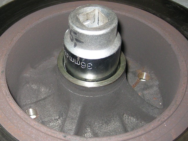 Zum Eintreiben der Lagersitze verwende ich meine 36'ger Nuß, die ich ansonsten nur zum Lösen der Kronenmutter an der Hinterachse benötige. (Ja, die hab ich mal für 15,- DM gekauft ;-)