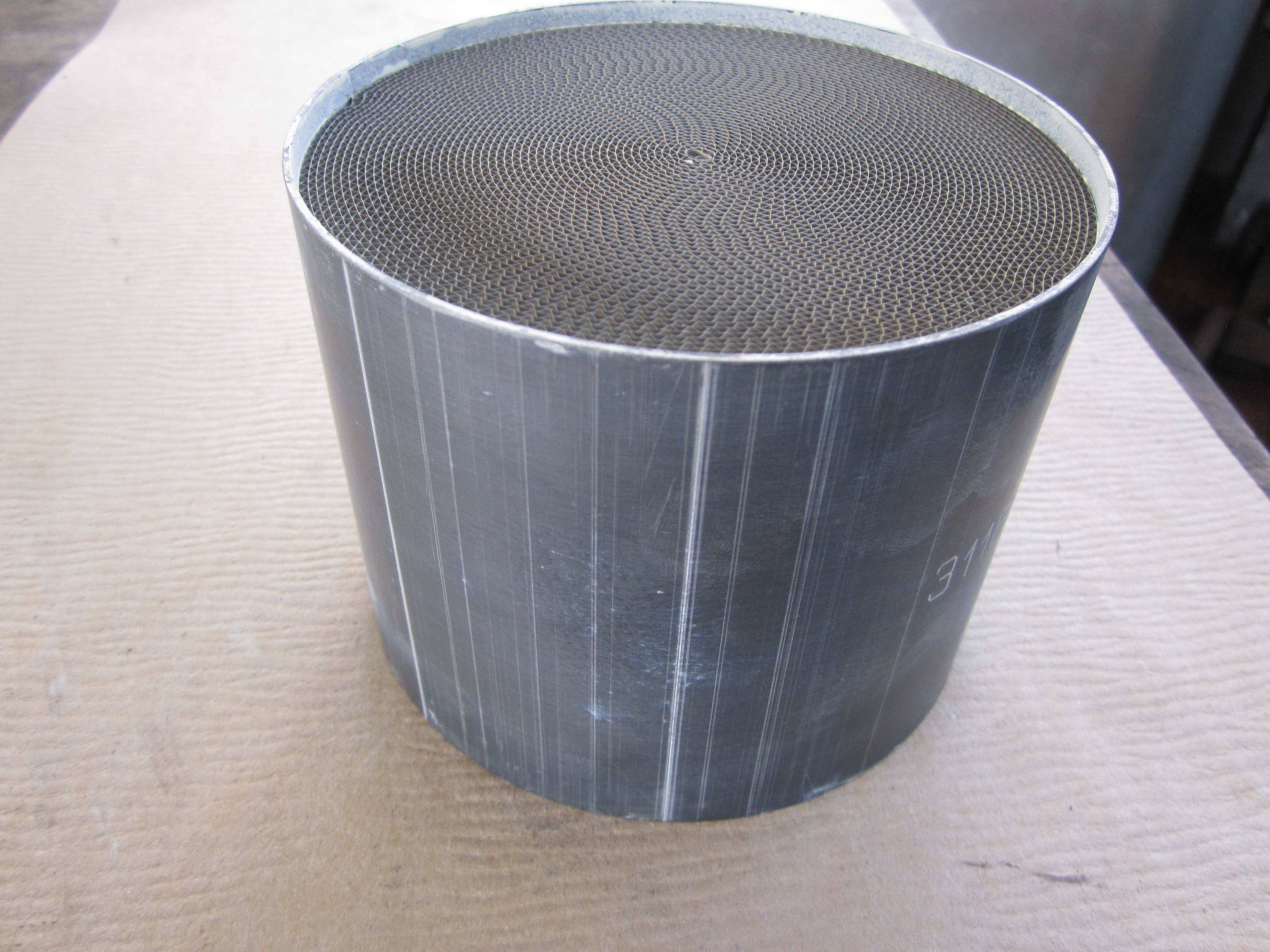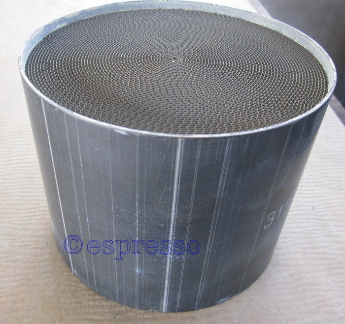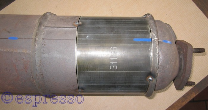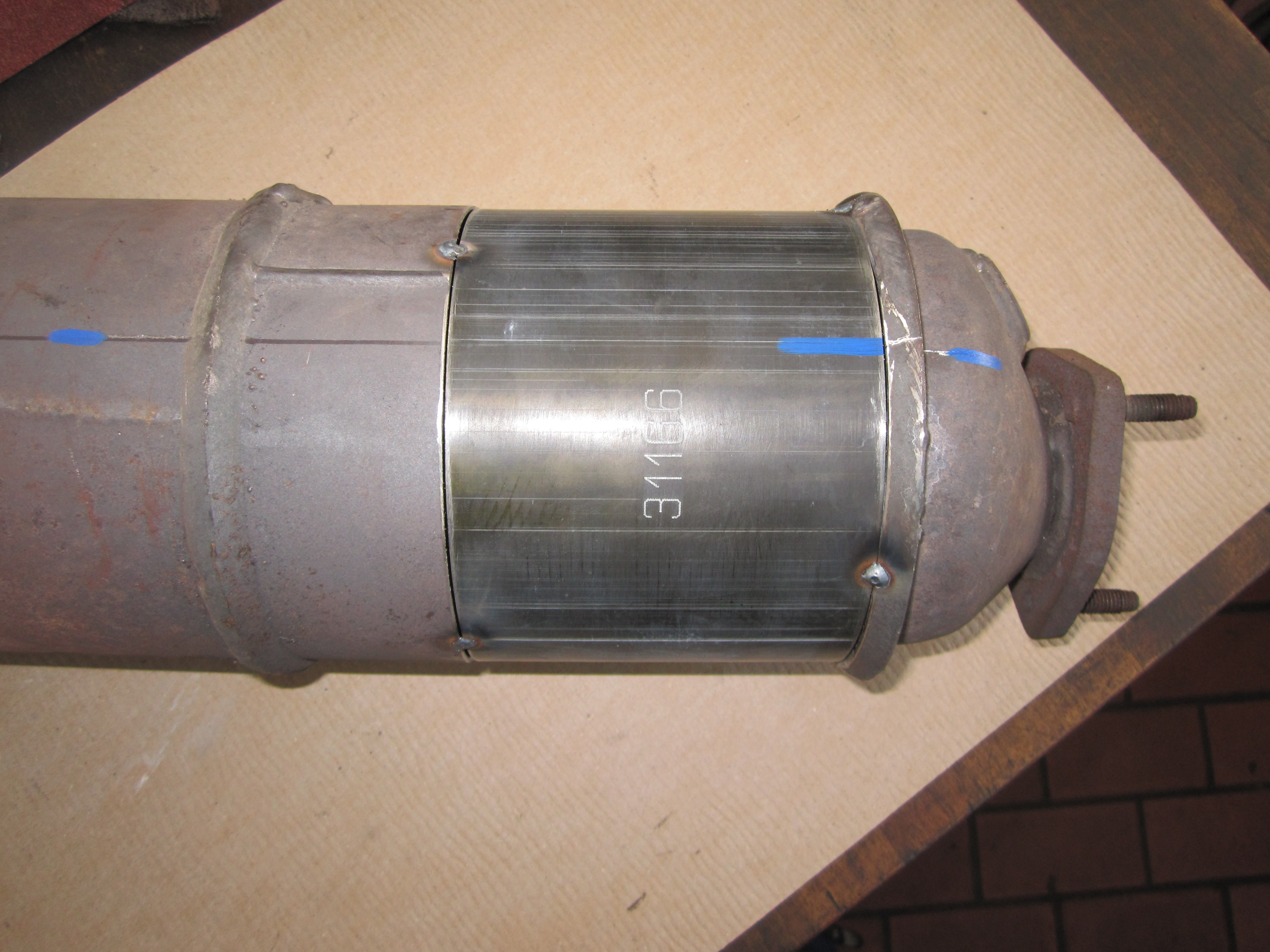 hier wird ein HJS-Kat mit einem Metallträger (d:127x100mm, 400cpsi) von KFZ-Technik Seubert Uni-Kat Pforzheim, wieder fit gemacht.
