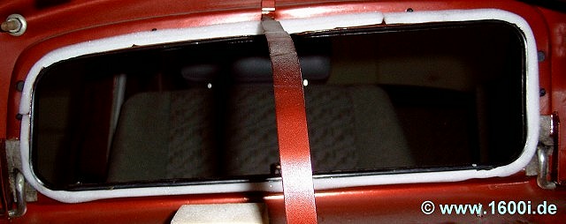 Dafür habe ich eine selbstklebende Schaumstoff-Dichtung (für Fenster und Türen) mit 9 mm Breite sowie 1-5 mm Höhe verwendet.