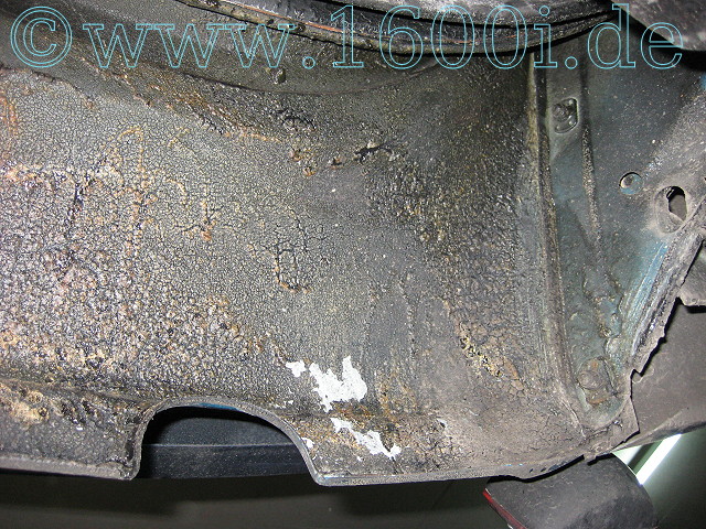 Ich hab hier die Brösel und nicht haltbaren Teile wegschliffen und danahc das Blech nochmal lackiert.