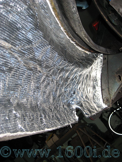 Ich habe aus dem 1600i Forum vom Forenbetreiber eine Dämmung für Industriegeräte bekommen. Ist so ne art Fasermatte mit ner dicken Alufolie auf der einen Seite und selbstklebend auf der anderen Seite. Die habe ich zugeschnitten und das Heckabschlussblech damit ausgekleidet.