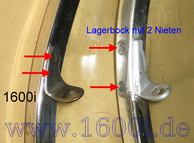 Bei dieser ist der Lagerbock mit zwei Nieten befestigt. Leider sitzt dieser
