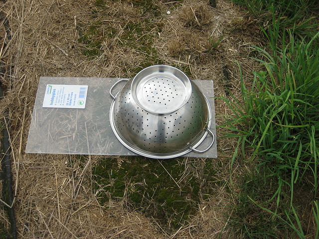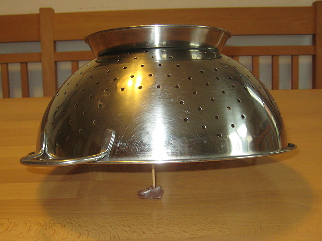 Und am nächsten Tag beim Blick in den Hobbyraum lag das Sieb am Boden. Hatte es jemand berührt - die Waschmaschine zu sehr gerumpelt - der Düsenjägerknall zu laut gewesen ???