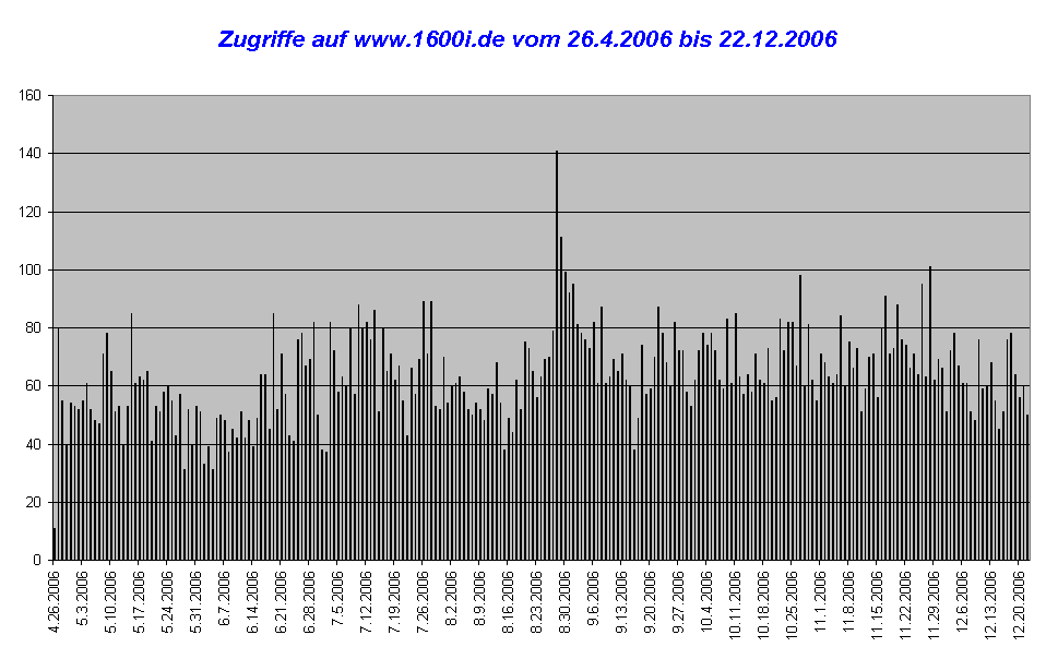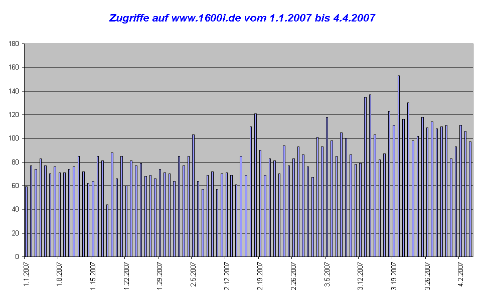 05.10.2006 7:06 Soeben war der 10.000'ste Zugriff seit dem 26.4.2006. Ich finde es ganz toll, wie euch diese Seite anscheinend gefällt !